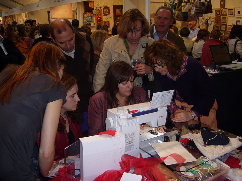 ¡Al final me decidí a ir! Y en compañía de mi amiga Carolina, otra apasionada del patchwork, hemos podido disfrutar de la Feria del Patchwork en la ciudad costera de Sitges (Barcelona), organizada por la Asociación Española del Patchwork (AEP). Se podía ver gran afluencia de público todos los días y el nivel de las exposiciones elevado. Mi Stand favorito este año ha sido el de “Bernina” del que pongo una foto en la que se nos puede ver a Carolina y a mí extasiadas por las explicaciones de Tere sobre las excelencias de la máquina “Bernina Aurora 440 EQ”. Tal fue mi agrado por las explicaciones de Tere, que me he decidido a comprar la máquina y tras probarla me parece excepcional. En otro artículo intentaré analizarla y detallaros las ventajas que esta máquina aporta a la confección del Quilt y el Patchawork.