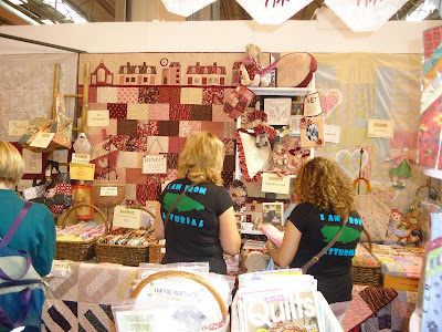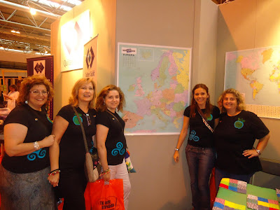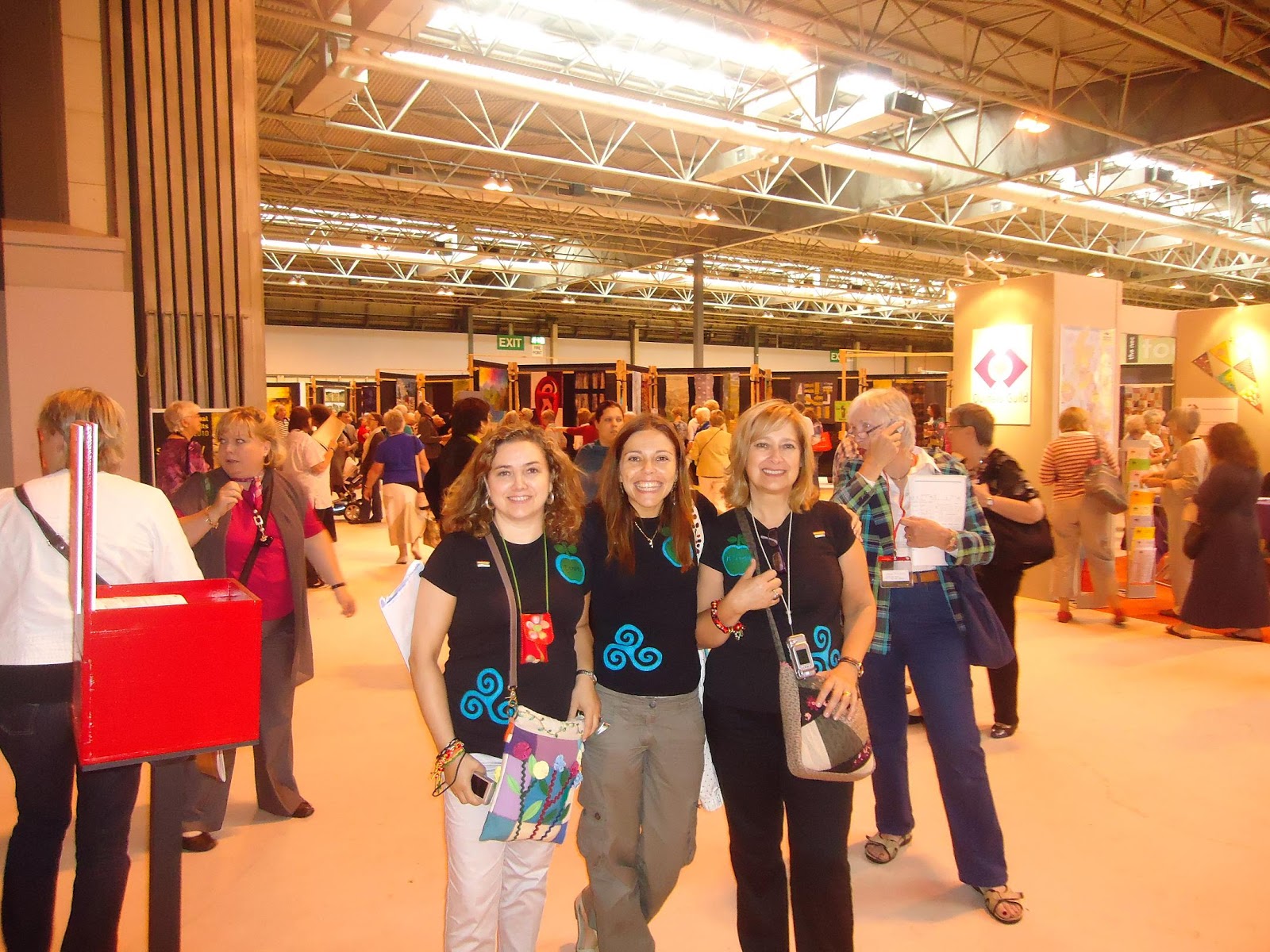 Nos encontramos con bastante gente de España. Era muy simpático, porque de repente alguien se reía y nos preguntábamos ambas de donde éramos (Asturias, Madrid, Barcelona, Bilbao etc.). Nos encontramos con unas expositoras de Barcelona muy simpáticas ( Desedamas), son dos hermanas Cecilia y Mercé que hacen unos trabajos pintados en seda fantásticos. Tuvimos que firmar y por supuesto, dejamos huella en la Feria, marcando en el mapa de la organización el lugar de procedencia de estas asturianas en el Festival Of Quilts 2010 Birmingham.