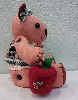 Este año hemos querido compartir un proyecto con todas las socias y quilters de España mucho más ambicioso y para ello hemos creado este osito, que representa a un animal muy característico de nuestra región junto con la manzana que lleva en su mano derecha, otro de los símbolos característicos de Asturias.