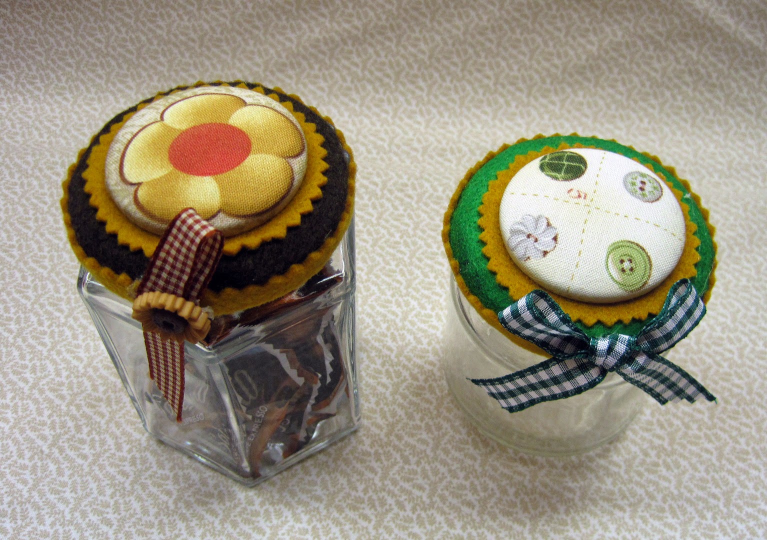 Sabéis que me encanta todo lo que tenga que ver con cintas, telas, botones, puntillas, fieltro… Se pueden hacer infinidad de trabajos curiosos y útiles; botes para guardar cositas, broches, diademas, tocados…
