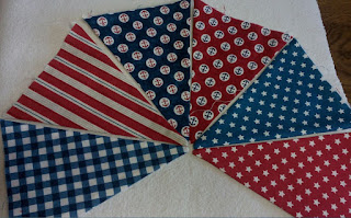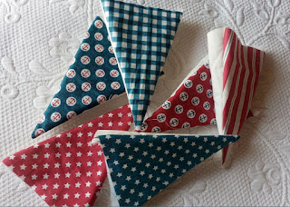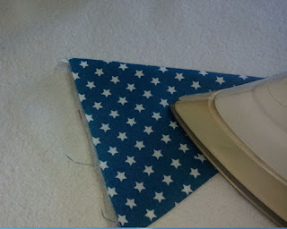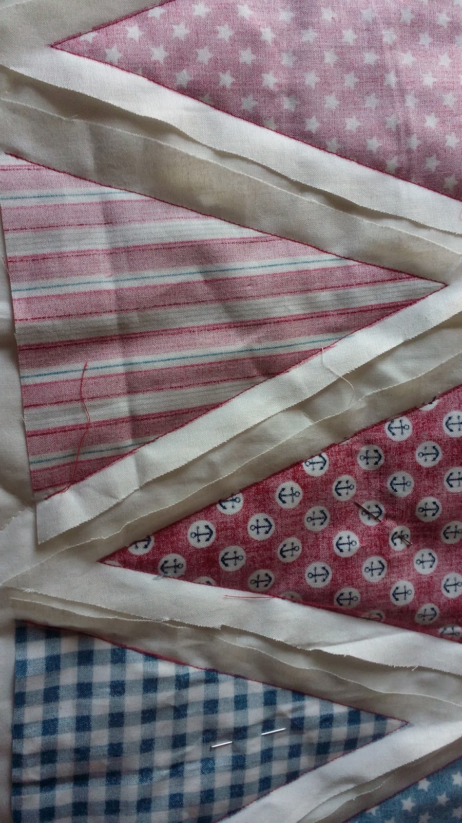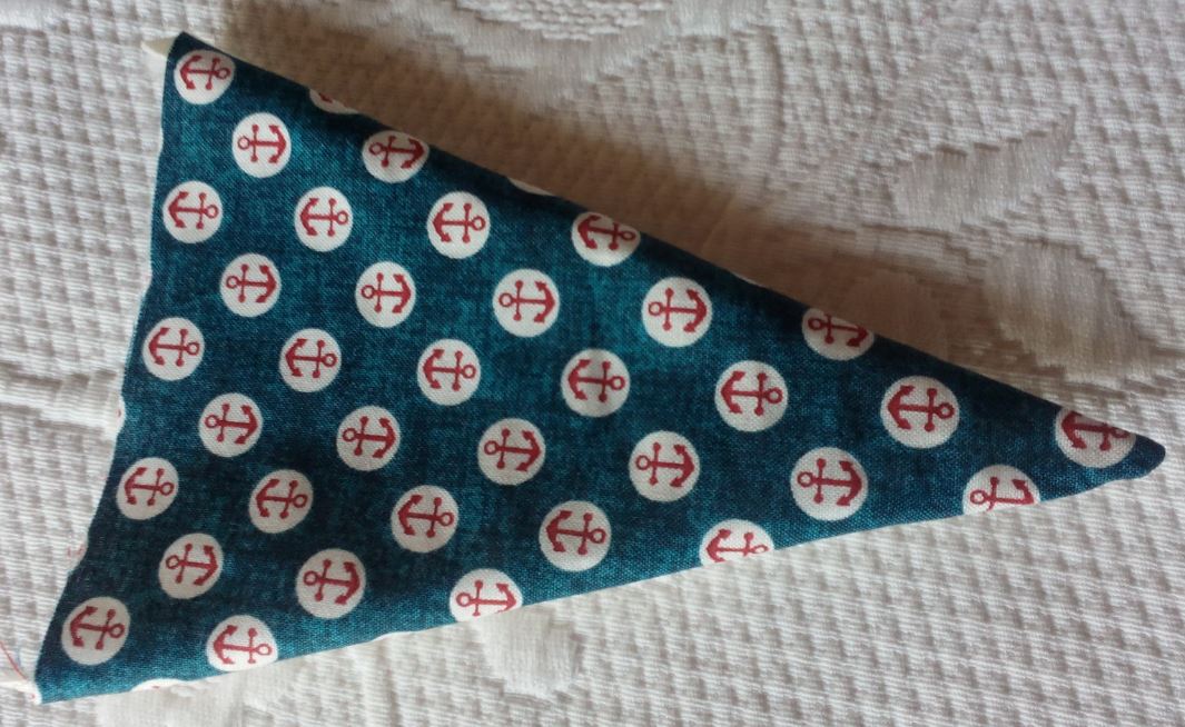 Cosemos los banderines. Lo he tenido muy fácil, los cosí con un poquito de guata con el forro incorporado que para este caso viene fenomenal, también podéis hacerlo sin la guata y el banderín os quedará más plano.