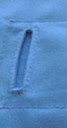 Por el derecho poner un trozo de la misma tela encarando los derechos de las telas en la marca de la abertura, el tamaño más o menos de 10 cm de ancho y coser a máquina un rectángulo de la medida de la abertura. Yo he dejado unos 6 cm más. Cortar por el centro y al llegar a las esquinas cortar de manera oblicua, como podéis ver en la foto haciendo la forma de una "Y"